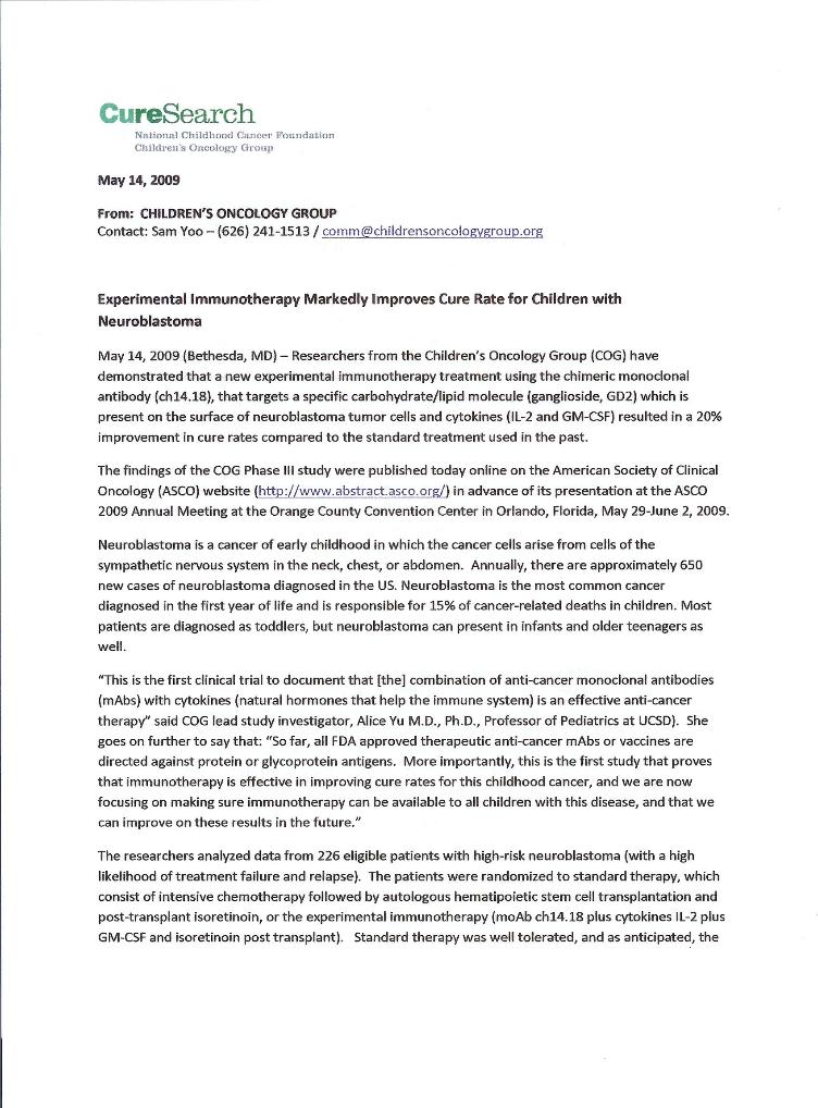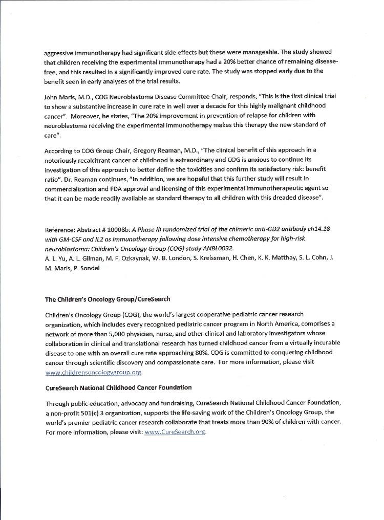 The following 2 pages explain the Neuroblastoma research project that