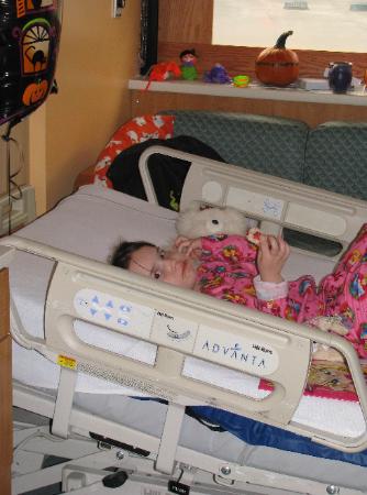 As for the IV sites, those are still making her miserable. Her right foot IV infiltrated back on