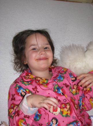 grinned, and started her day with lots of fun. Obviously though, she is still battling somewhat of